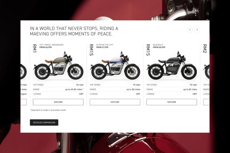 Ahead of the launch of their newest electric motorcycle, the RM2, Maeving came to us with a Shopify store that was no longer fit for purpose. Their existing product configurator was clunky, full of bugs, and unable to support the level of customisation required for different bikes and markets.